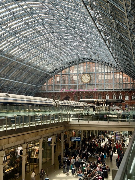 I think I snap a photo every single time I find myself under the glass roof of St. Pancras International, which today serves as the terminus of highspeed trains to Europe and around the UK. What particularly catches my eye - and the eyes of many others passing through - is the neon I Want My Time With You sign, by Tracey Emin RA, which “reminds travellers to stop and take a moment in one of the UK’s busiest railway stations” (Royal Academy, https://www.royalacademy.org.uk/exhibition/terrace-wires-tracey-emin).